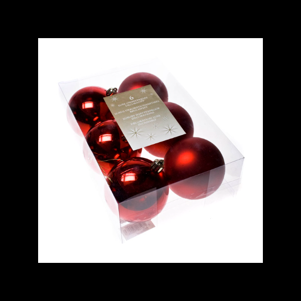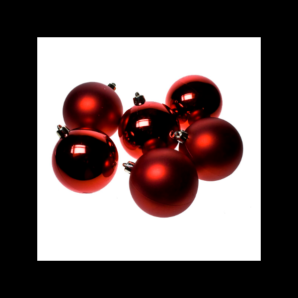 Christmas Red Baubles - Shatterproof - Pack of 6 x 80mm