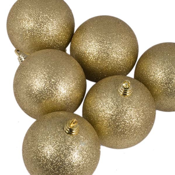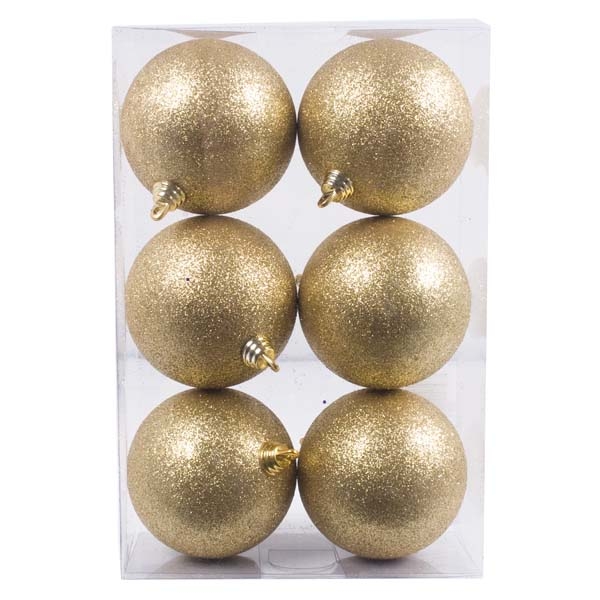 Xmas Baubles - Pack of 6 x 80mm Gold Glitter Shatterproof