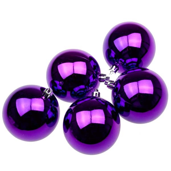 Purple UV Protected Shatterproof Baubles - Pack of 6 x 80mm