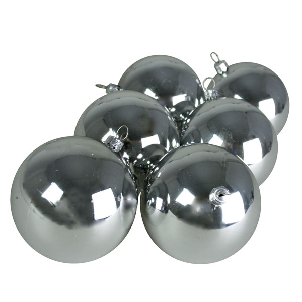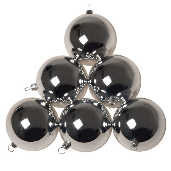 Luxury Silver Shiny Finish Shatterproof Bauble Range - Pack of 6 x 80mm