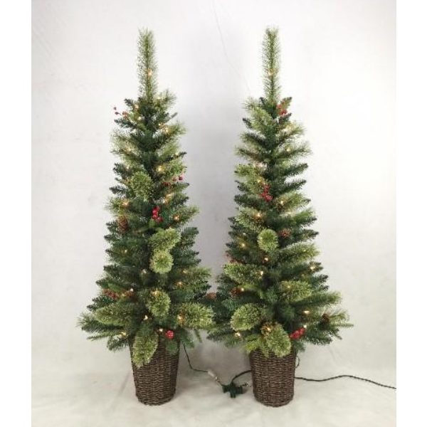 Desc.: 2pk 4.5ft urn pine tree W/189Tips,Woven basket look base