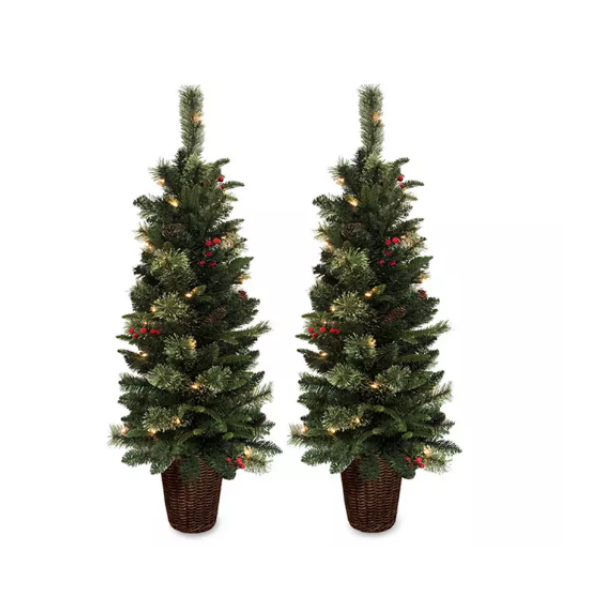 4.5‘ Pre-Lit Artificial Christmas Urn Trees, 2-Pack
