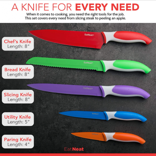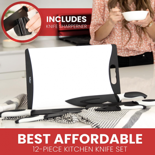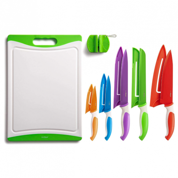 and a 5" utility knife+sharpener+cutting board +knife cover of each