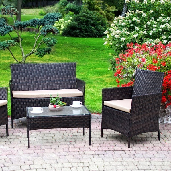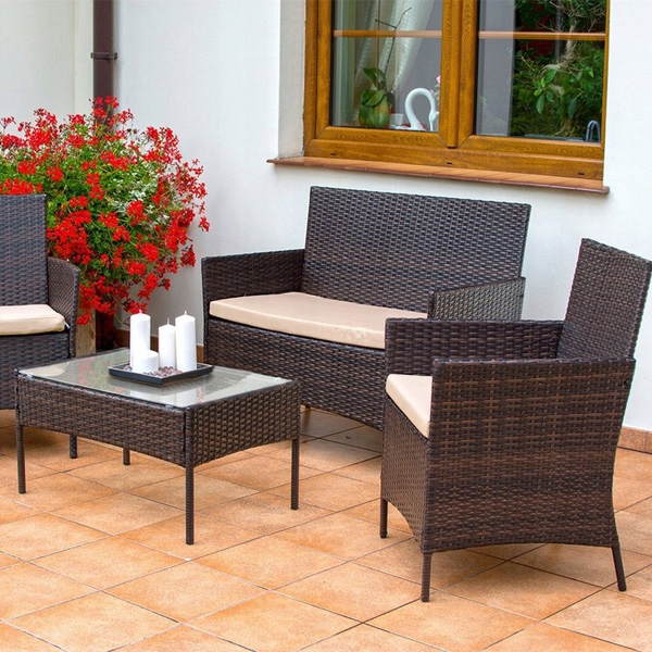 3. Patio rattan sets comes with 1 double sofa w/cushion, 2 single sofas w/cushions, and 1 table with tempered glass.