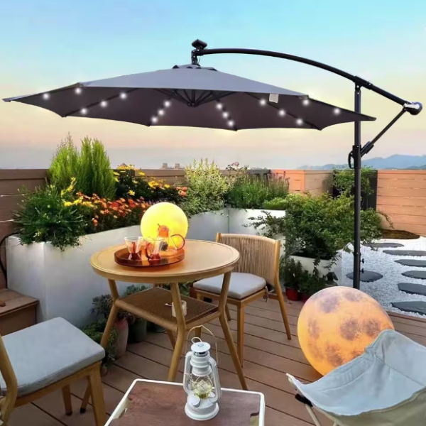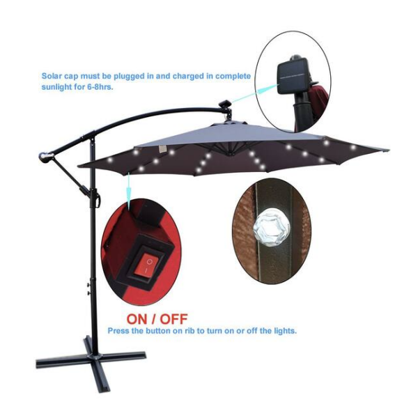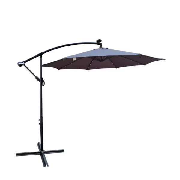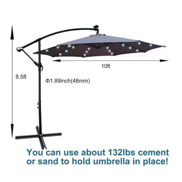 10 ft. Outdoor Patio Cantilever Umbrella Solar Powered LED Lighted with Crank in Medium Grey